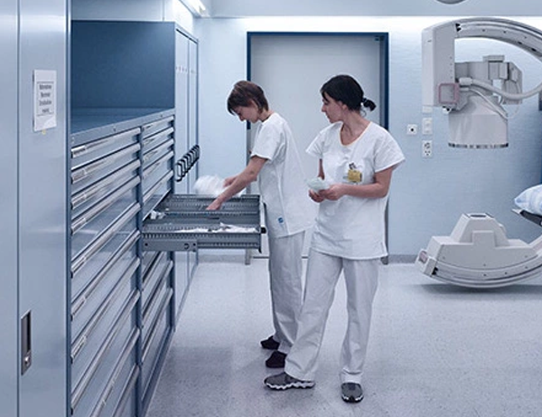 Im Gesundheitswesen haben Lager- und Betriebseinrichtungen hohe Anforderungen zu erfüllen. Wo Medikamente, Patientenakten und andere sensible Materialien gelagert werden, sind einfacher Zugriff, Sicherheit und gute Orientierung gefragt. Hier bietet LISTA nicht nur ein flexibel an die individuellen Kundenbedürfnisse anpassbares System, sondern auch das notwendige Know-how für branchenspezifische Sonderlösungen.