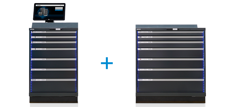 The basic module of your LEC solution can be individually or flexibly expanded with any number of extension units. The height and number of drawers are variable. Drawers with and without compartments can be combined as desired. The two-sided LED lighting at the front and the attachment with integrated screen holder are always included.
