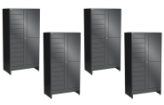 - L'armadio con porte a battente LISTA E è adatto per articoli di grandi dimensioni e può essere dotato a scelta di finestrelle trasparenti.